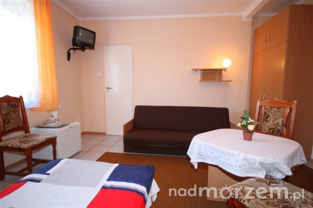 Oferujemy pobyt w pokojach 1- (pokój przystosowany dla osób niepełnosprawnych), 2-, 3-, 4-osobowych. Dysponujemy też pokojem 5/6 osobowym - dwa połączone pokoje.