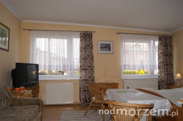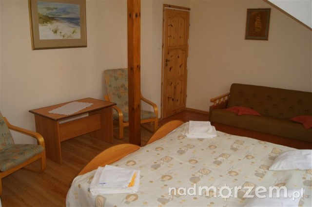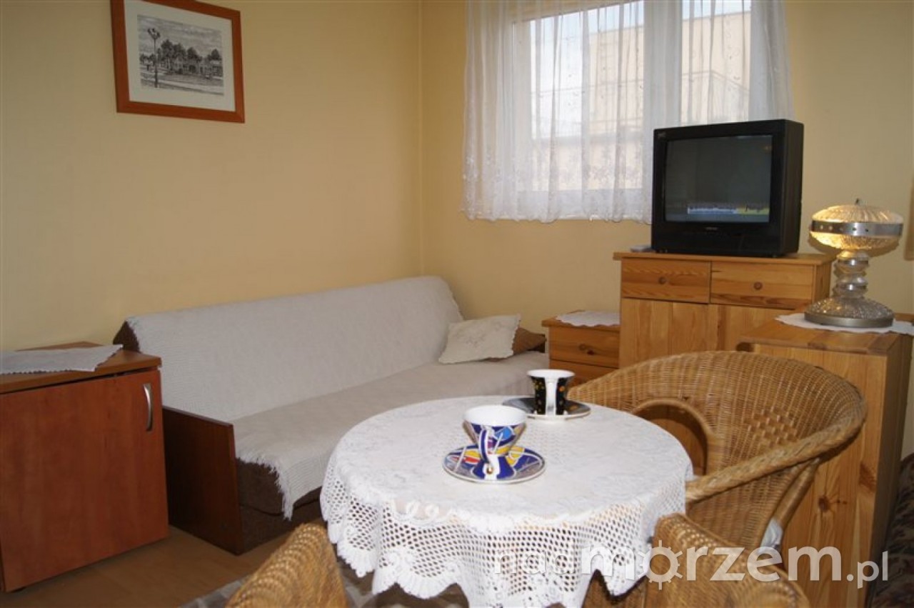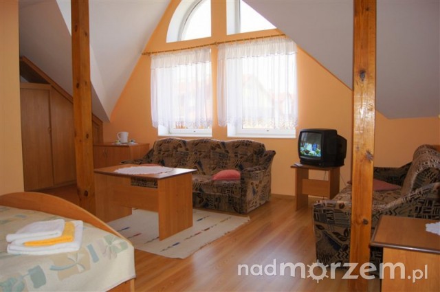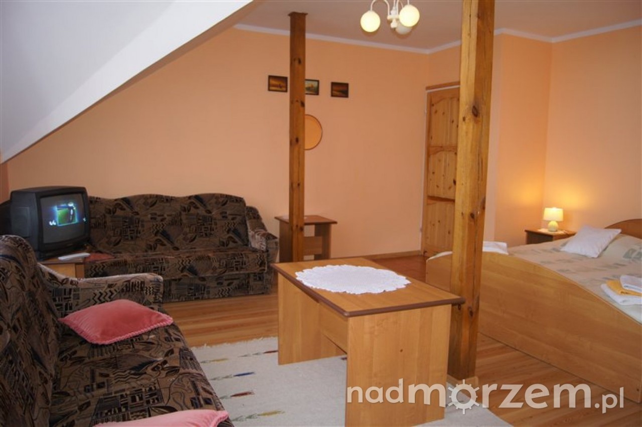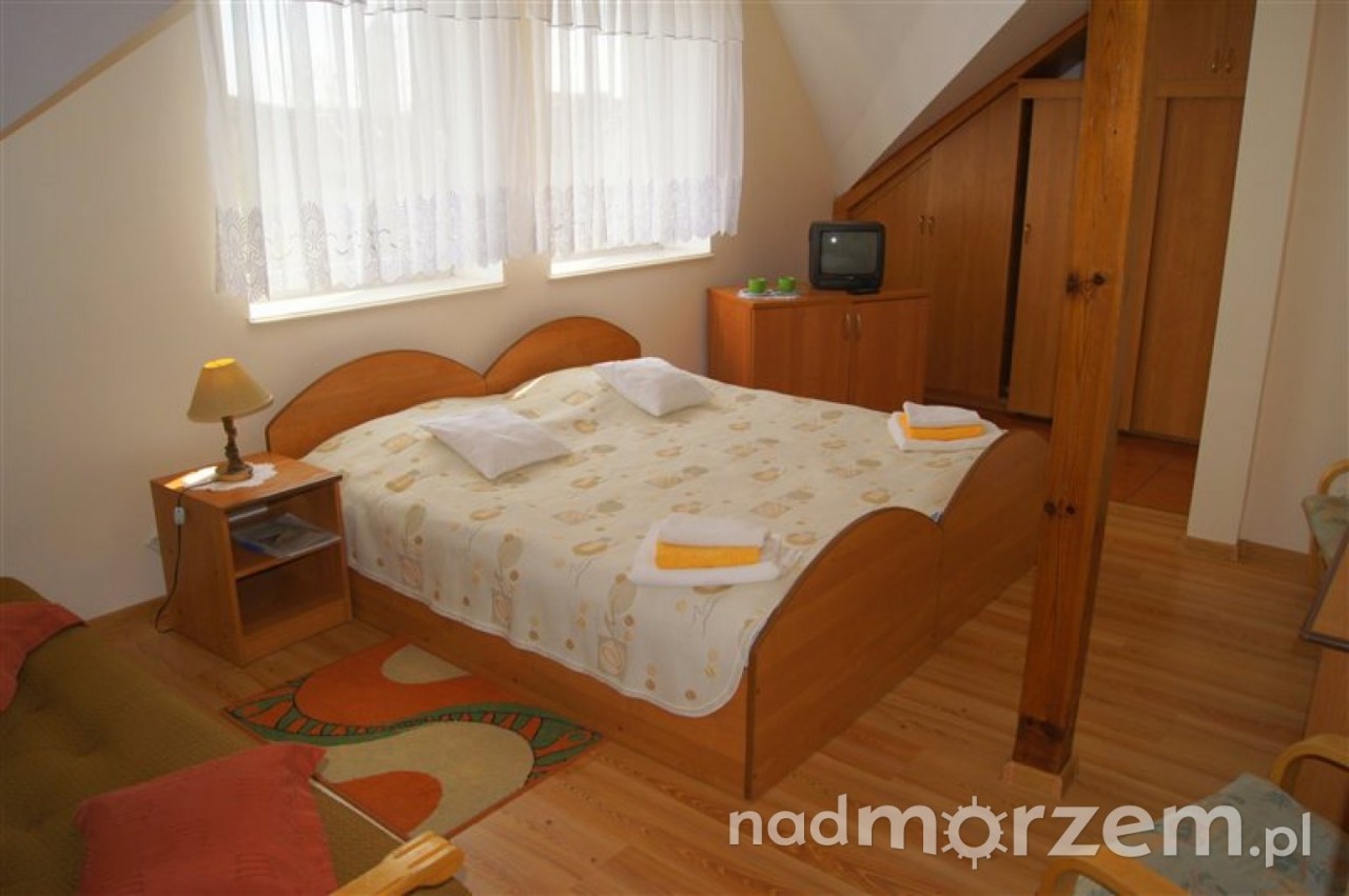 Nasze pokoje są przestronne i bardzo wygodne, wyposażone są w telewizję kablową, lodówkę, podstawowe naczynia oraz sprzęt plażowy. Każdy pokój posiada łazienkę – natrysk, wc, umywalkę, dodatkowo wyposażoną w ręczniki i suszarkę do włosów.
